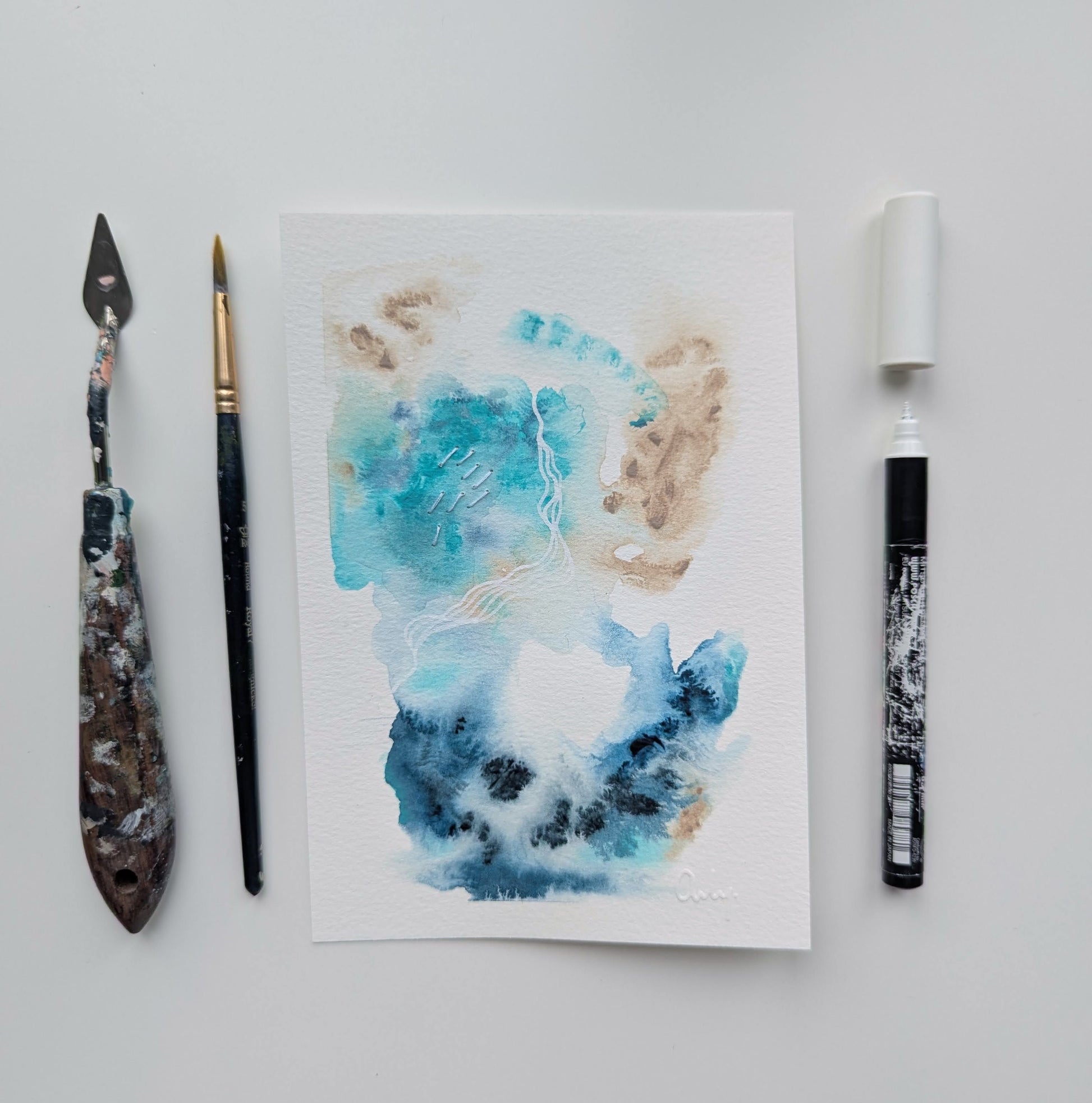 Les pieds dans le sable chaud, le goût entêtant du sable sur les lèvres, la peau qui se réchauffe sous le soleil, l'odeur de la mer, les chants des oiseaux marins; voilà les sensations que j'ai voulu représenter par cette oeuvre. Une véritable ode à l'été.