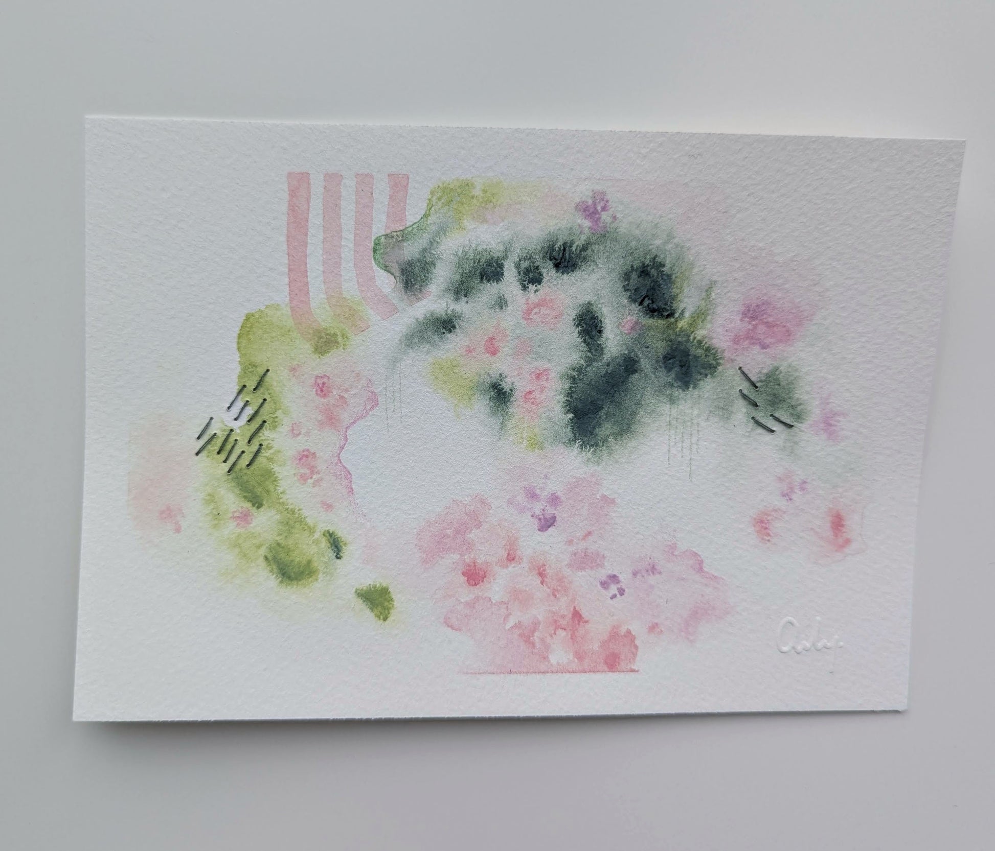 Laisse-toi être émerveillé par les fleurs et le feuillage qui se réveillent, malgré un sol qui semble toujours endormi. La sensation de savourer le beau temps, sans manteau ni botte. Comme si un pinceau venait enfin ajouter de la couleur à un paysage, qui a trop longtemps été en noir et blanc. Par cette oeuvre, j'ai voulu rendre hommage au printemps.